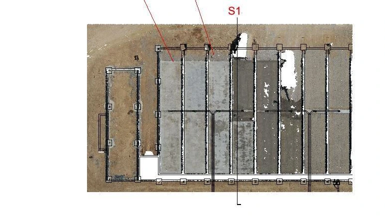 En la obra de una nueva instalación ganadera industrial se decidió utilizar un dron operado in situ por un técnico para el control de ejecución de excavaciones y cimentaciones.