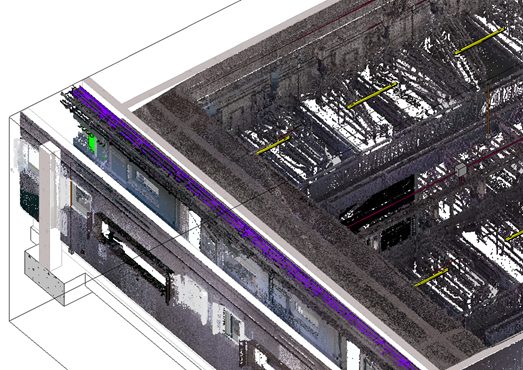 - Convertir las nubes de puntos en componentes BIM como muros, columnas, instalaciones MEP, entre otros.