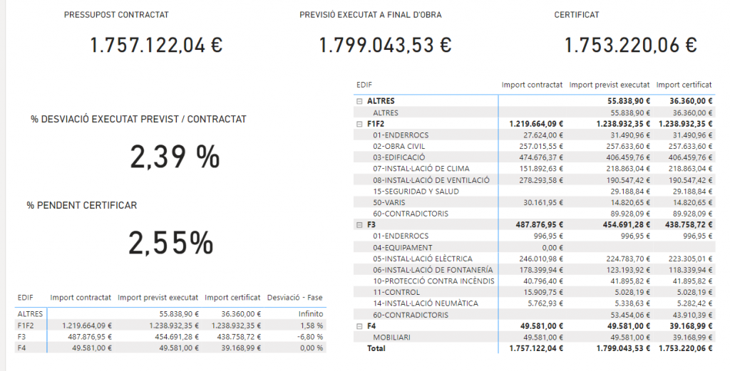 - Dashboards interactivos: Visualizan el progreso de obra, indicadores clave de rendimiento (KPI) y desviaciones en tiempo real, permitiendo una toma de decisiones informada.